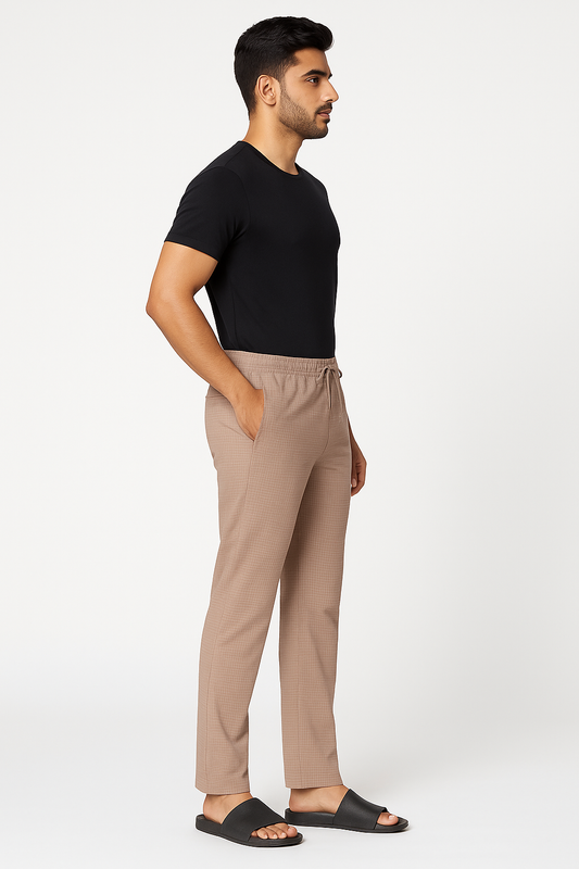 CottCraft Men’s Light Coffee Brown Graph Pattern Oxford Cotton Pyjama