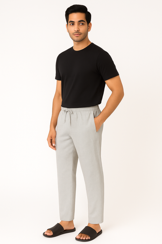 CottCraft Men’s Grey-White Graph Pattern Oxford Cotton Pyjama