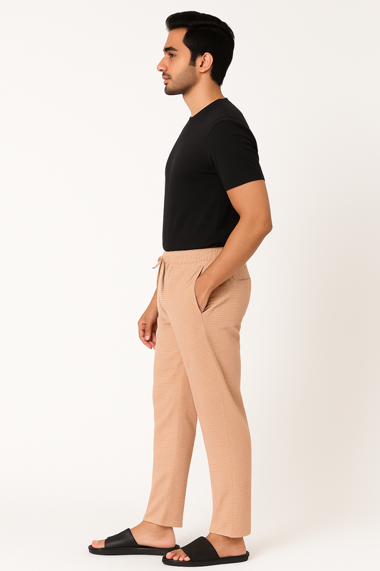CottCraft Men’s Light Coffee Brown Graph Pattern Oxford Cotton Pyjama