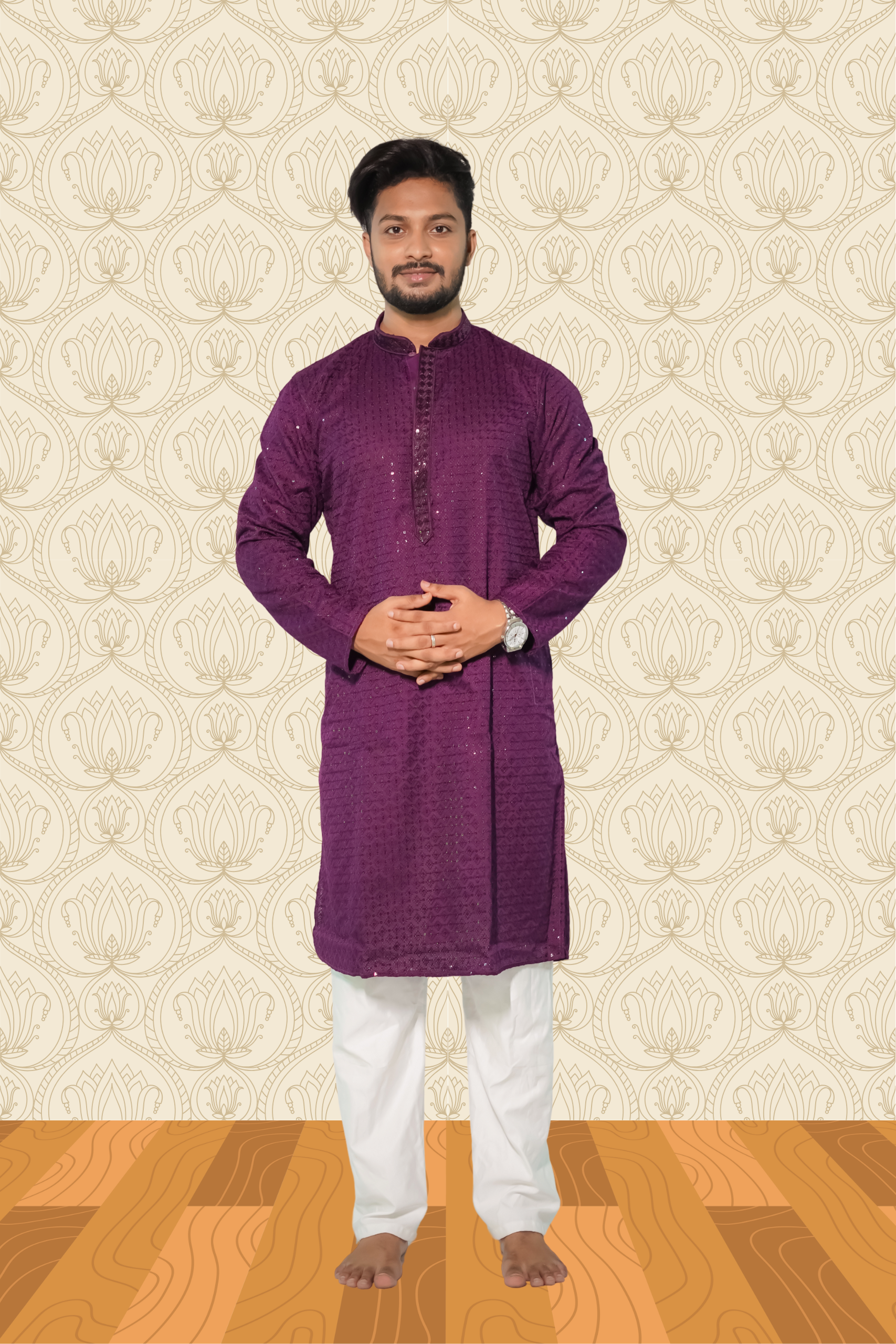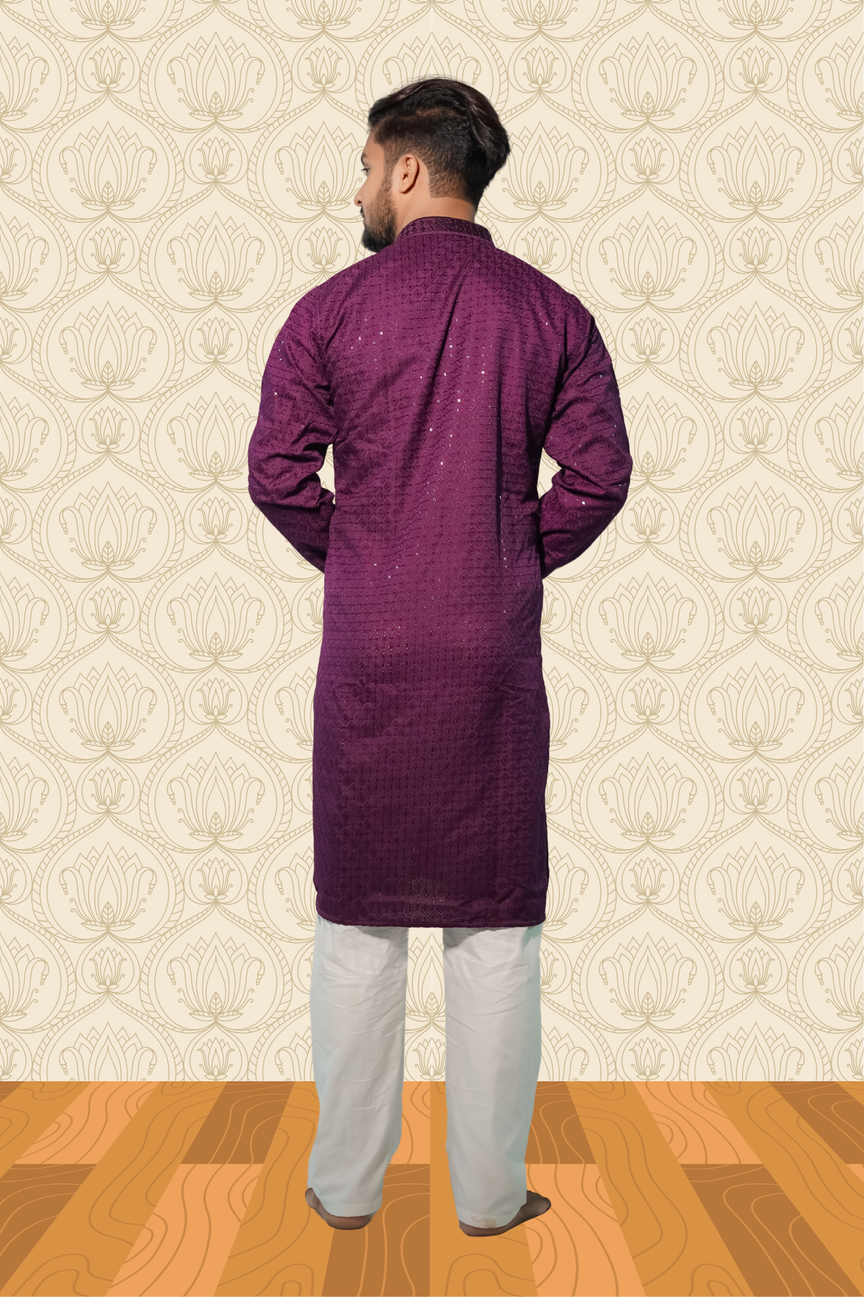 Description -Dark Purple Rayon Sequence Embroidered Cotton Men's Kurta, crafted from premium rayon fabric. Designed for men who love comfort with style, this kurta pajama set is a timeless outfit for weddings, festivals, and special occasions.