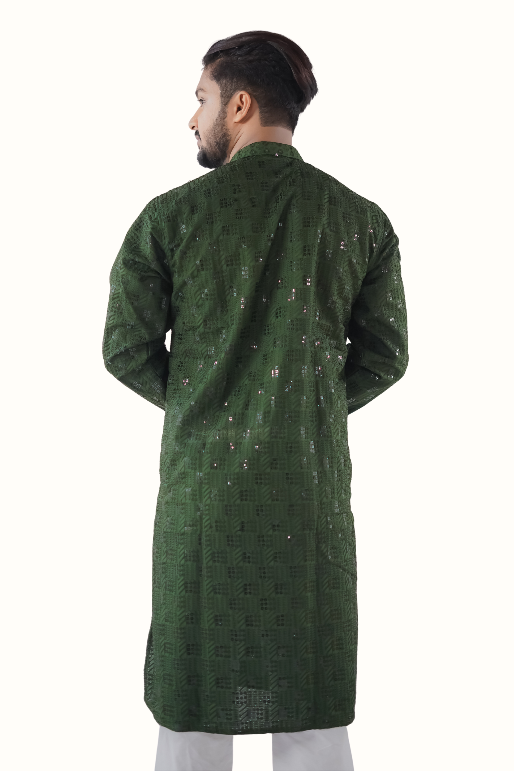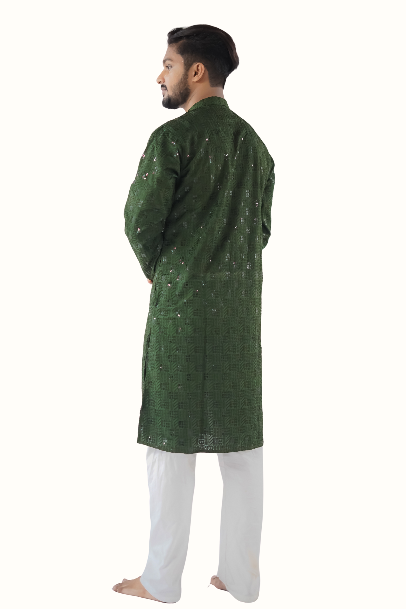 Description -Men Ethnic Motifs Embroidered Regular Sequinned Kurta with Pyjamas crafted from premium rayon fabric. Designed for men who love comfort with style, this kurta pajama set is a timeless outfit for weddings, festivals, and special occasions.