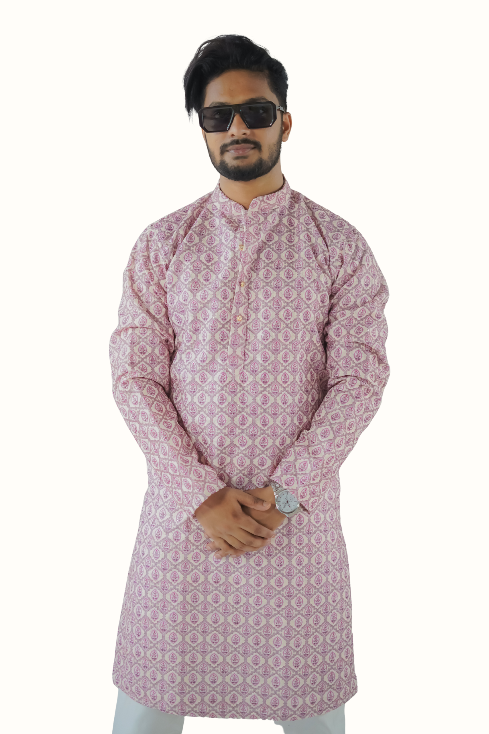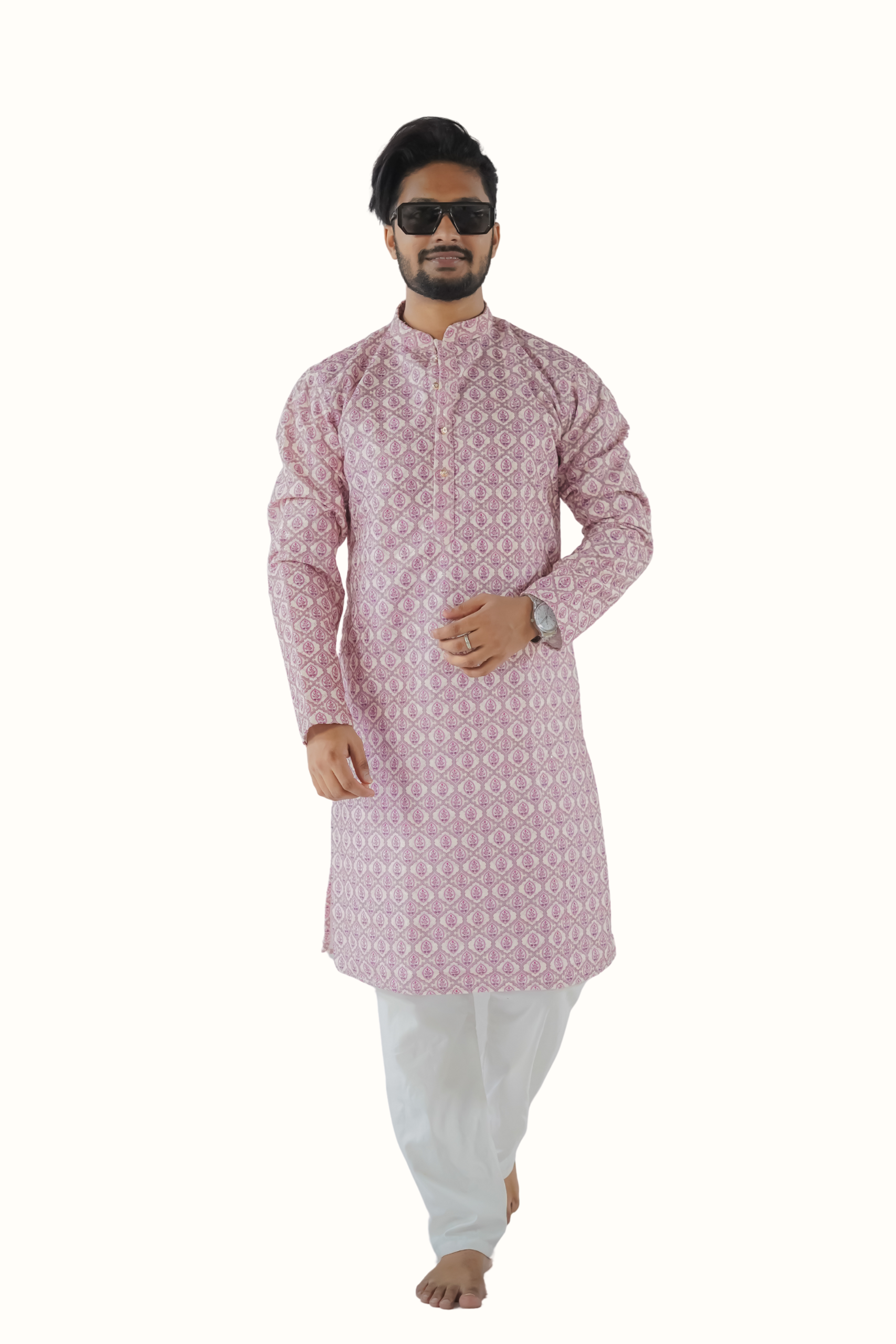 Description -Onion Pink Kurta Set pyjama ethnic wear set, crafted from premium rayon fabric. Designed for men who love comfort with style, this kurta pajama set is a timeless outfit for weddings, festivals, and special occasions.